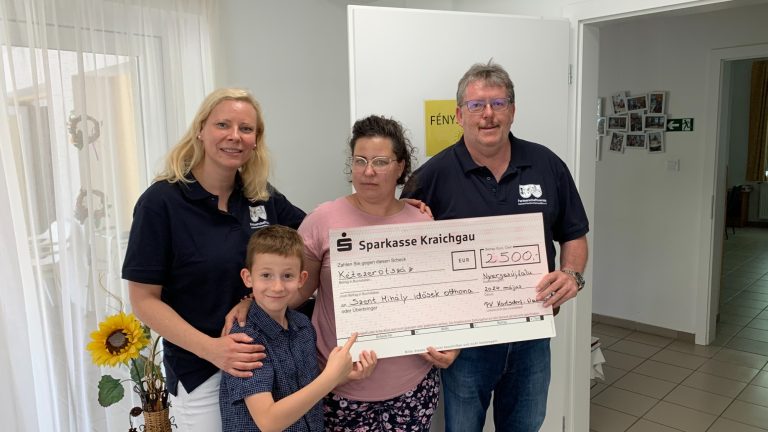 In der vergangenen Woche überreichte der Marktgebietsleiter Marco Samson unserem Präsidenten Anton Bayer und unserer Kassiererin Eszter Betz einen Spendenscheck. Durch die Unterstützung der Sparkasse Kraichgau kam ein Geldbetrag von über 2.300 € zusammen! Eine stolze Summe, die wir dem Altenheim in Nyergesújfalu zugutekommen lassen.